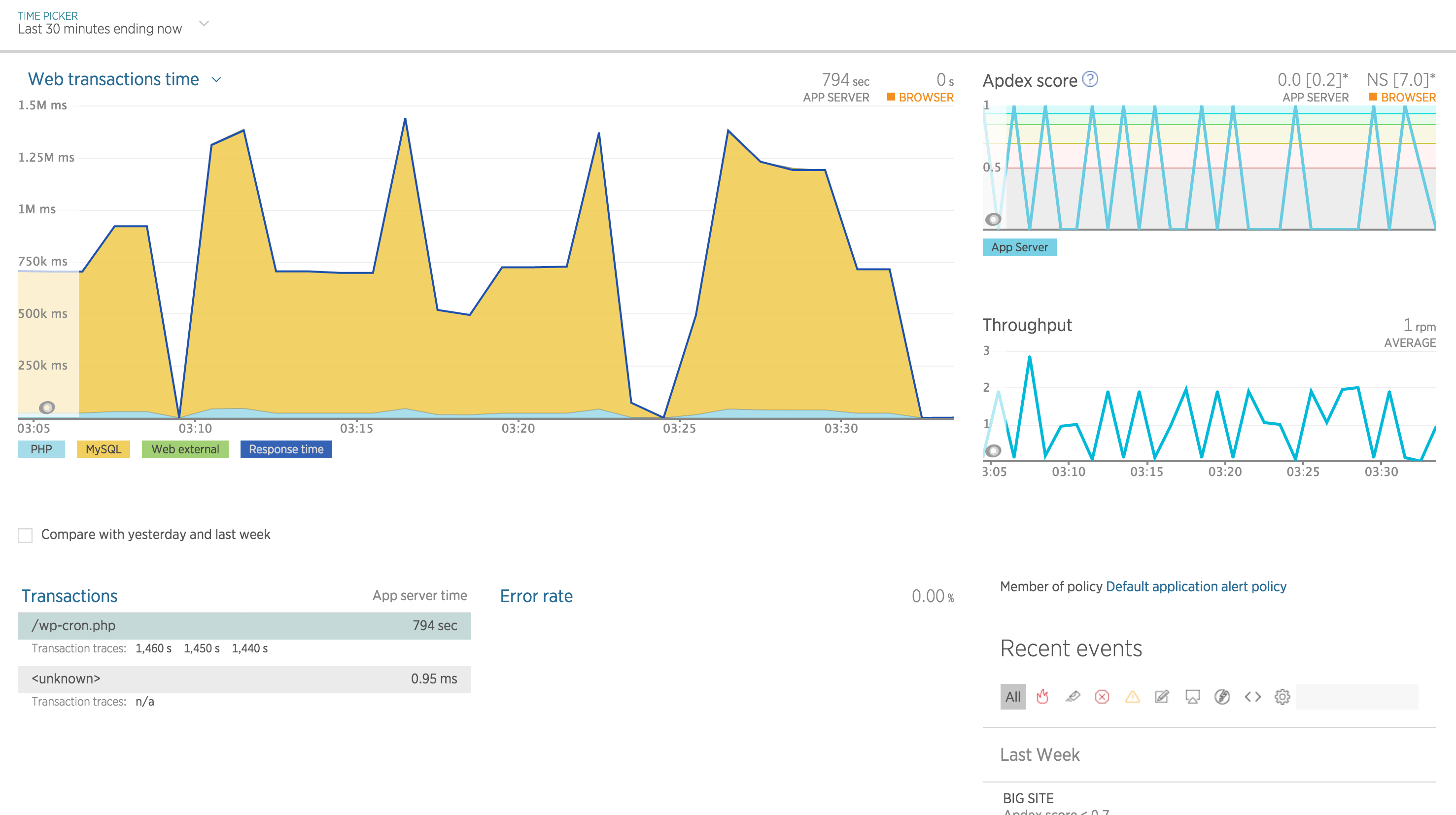 Seriously, sign up for New Relic, and start using that if you have a moderately traffic heavy site. It is just so awesome. Here, have a link (non-affiliate. I don’t think they have affiliate things): https://newrelic.com/signup